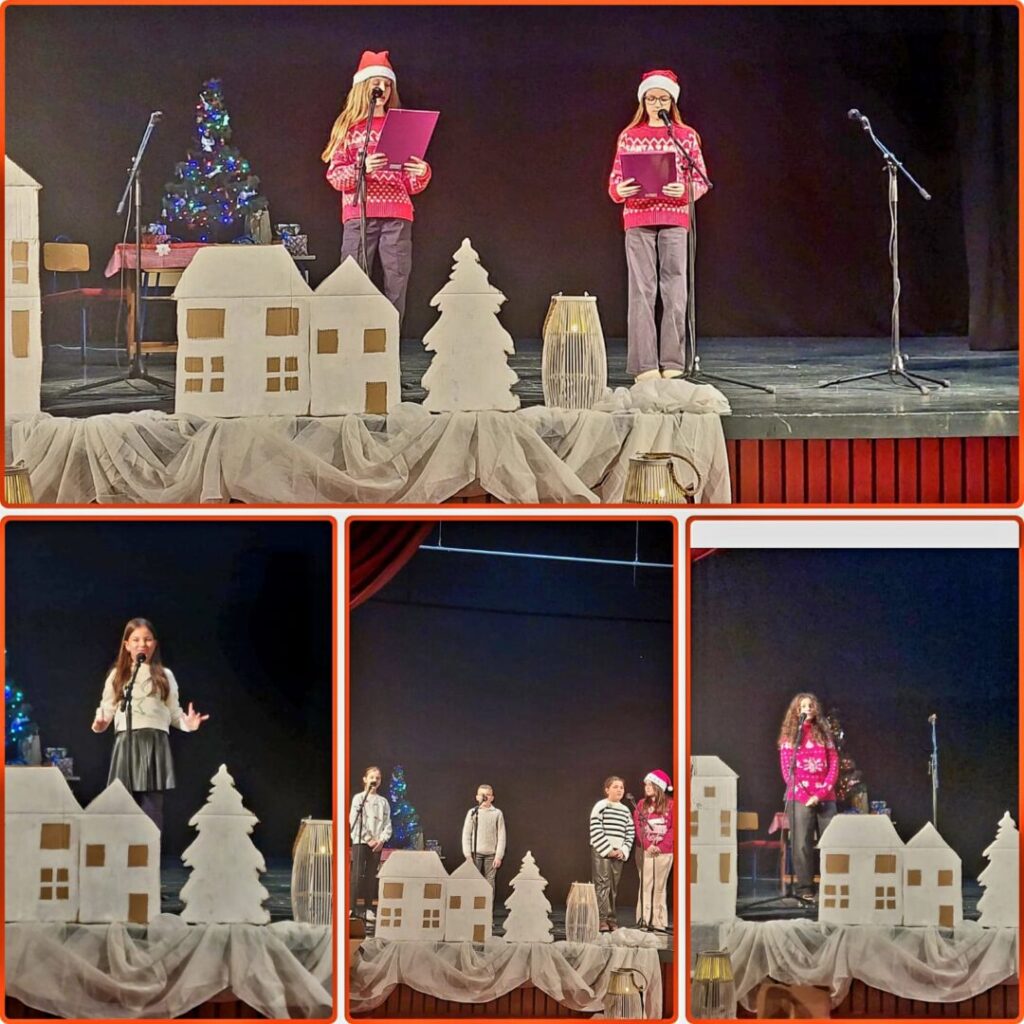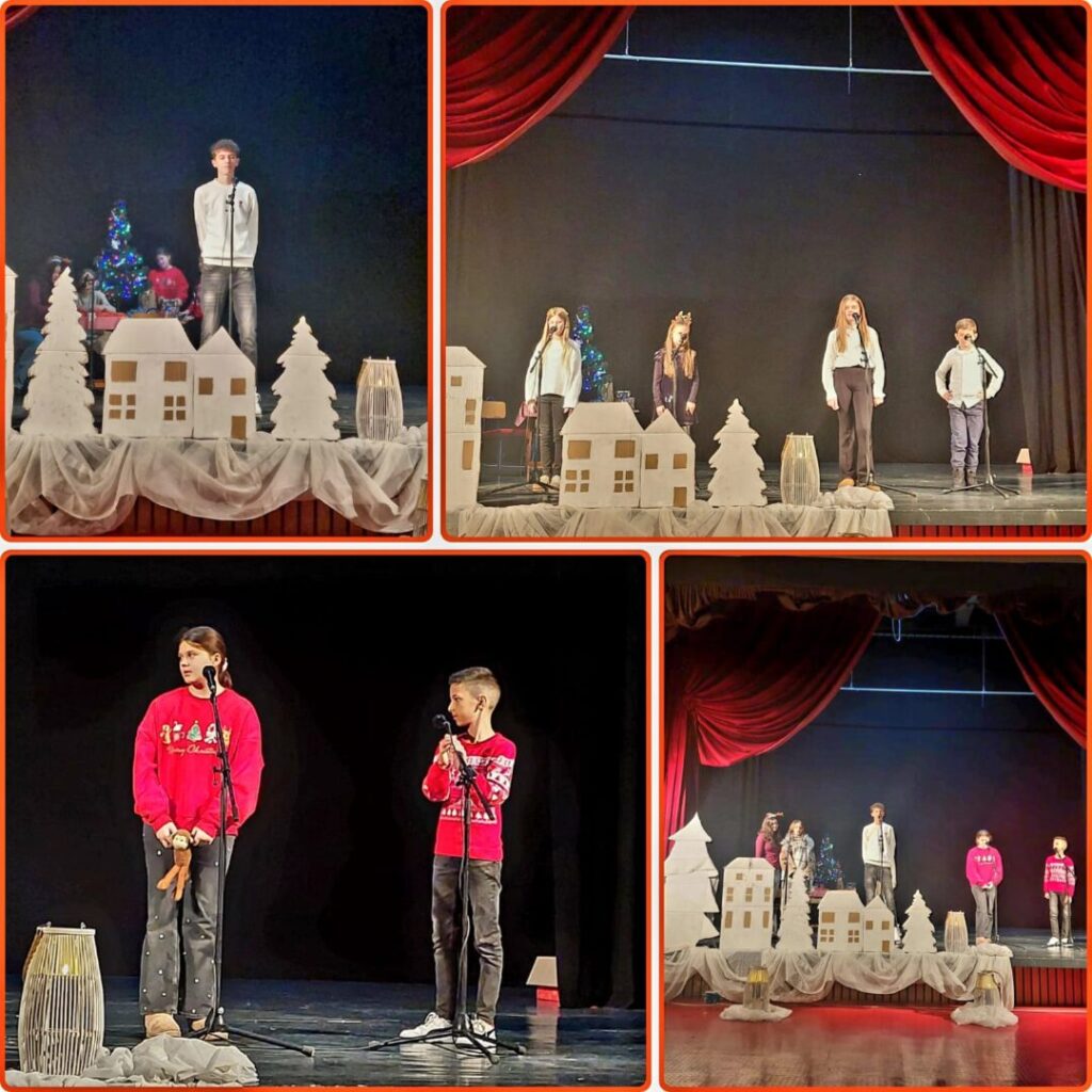 Učenici 4. a razreda izveli su recitaciju „Božićna zvona“, dok je 4. b razred publici predstavio recitacije „Radost Božića“, podsjetivši sve prisutne na važnost radosti i mira u blagdanskom vremenu.