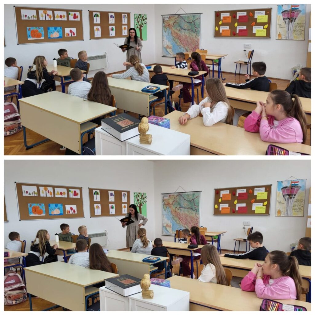 Školska knjižničarka je učenicima pričala čemu služe knjižnice i knjige, koja je razlika između knjižnice i knjižare, koje vrste knjižnica postoje, što rade knjižničari i čega se najviše boje.